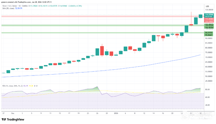 从技术面看,短期内若银价要进一步上涨,就必须保持在113.50美元上方。
