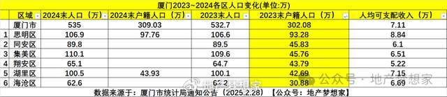 集美:作为厦门人口最多的新城,一直被年轻人追捧。2025年初,集美坐拥110.1万常住人口(近一年增加0.5万人),其中,户籍人口约46万。