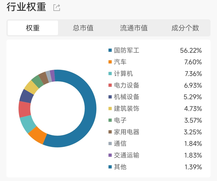 如果投资者更看好航空板块的投资机会,也可以关注航空航天ETF(159227)。是目前跟踪国证航天指数的规模最大的ETF,军工行业权重 98.2%,商业航天概念占比 56.5%。