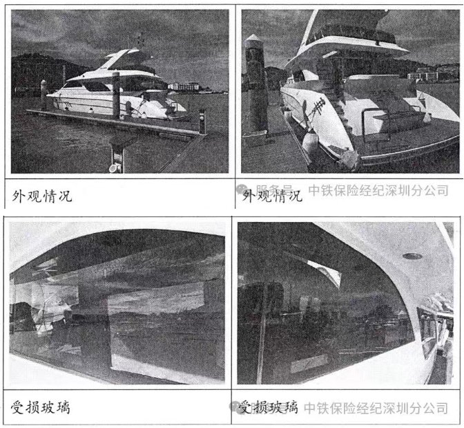 查勘施救情况:接到报案后,中铁保险经纪立即启动重大案件流程。考虑标的游艇仍处于危险状态中,立即要求船东寻求海事协助施救,但因灾情严重,海事部门力量不足,未能提供帮助。为尽快施救,中铁保险经纪联络当地公估,协调施救力量。