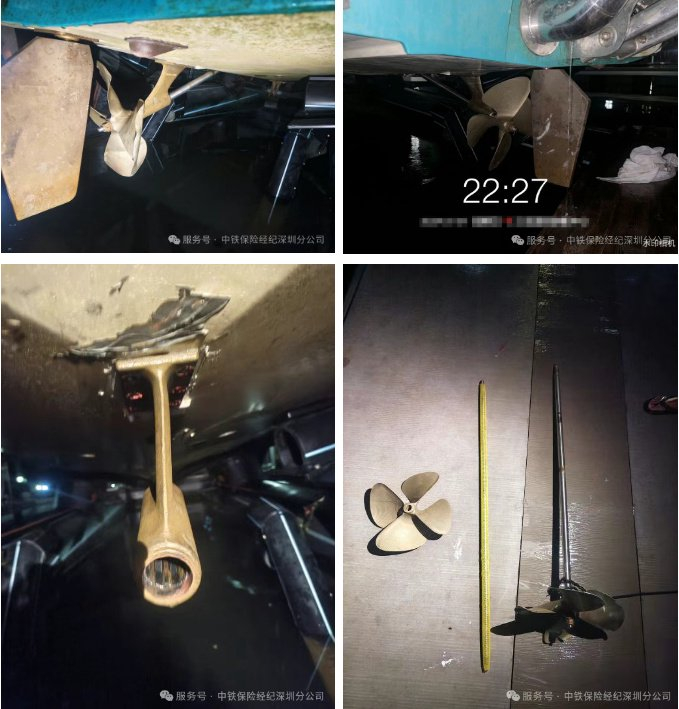 2025年01月某日,“***号”游艇从**市**游艇码头出发前往**湾途经***桥下时,螺旋桨打到石头导致轴头断,螺旋桨落水,随后报保险公司处理。