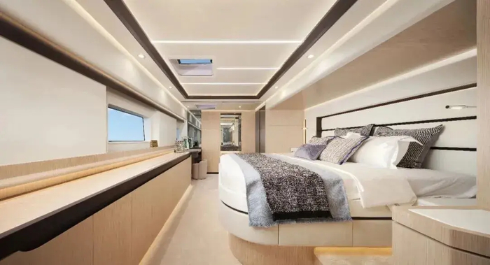 22.6米船长搭配11米船宽,突破同级别游艇空间限制,4间全景舷窗客房配独立干湿分离浴室,卧床即可尽览海上晨昏。
