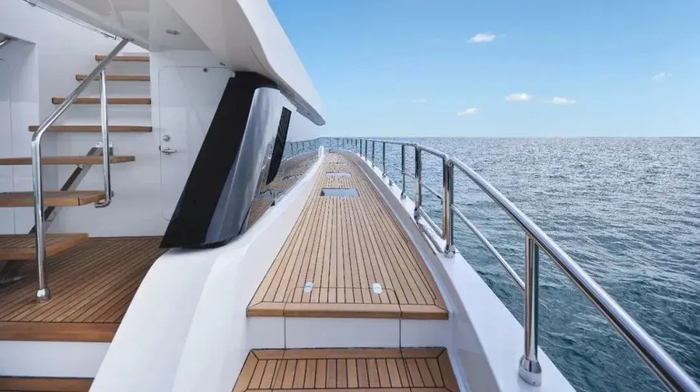 这一配置不仅大幅降低停泊时的燃油消耗,从源头减少碳排放,更彻底告别传统发电机的噪音和振动,让航海者沉浸式享受海风与浪涛的静谧交响,完美诠释“无痕航海”的高端体验。