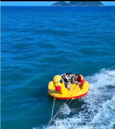 2024年5月某日,伤者乘坐小黄鸭游玩,突然一个浪打过来,导致腰部颈椎受伤。