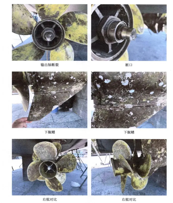 3、左舷艉鳍经拆检发现艉鳍与下艉机壳体连接卡扣处断裂破损。