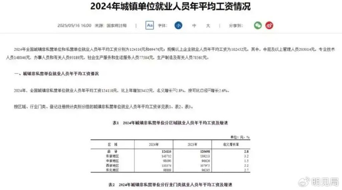 这里你可能发现了,私营单位的可比口径增速和名义增速差别有点大。这是因为第五次全国经济普查后,劳动工资统计的覆盖范围变得更完整了。以前有些小微企业可能没被统计到,普查后它们都被纳入进来了。而这些小微企业员工的工资水平相对低一些,所以拉低了整体的平均工资水平,也影响了名义增速。但从可比口径增速来看,私营单位员工工资其实增长得不错呢!
