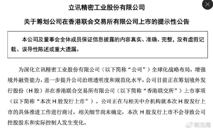 港交所持续火爆,近日,立讯精密一纸H股上市公告“搅动”资本市场。