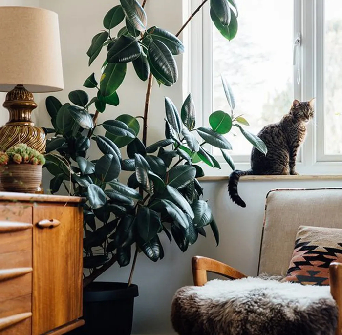 橡皮树看起来稳重大气,很适合摆放在客厅镇宅。橡皮树净化空气的能力也很优秀,它可以吸附粉尘,吸收空气中的有害物质,室内养一棵,健康又美观。而且,橡皮树养护起来其实是比较简单的,它的习性和它的外表一样,并不娇气。