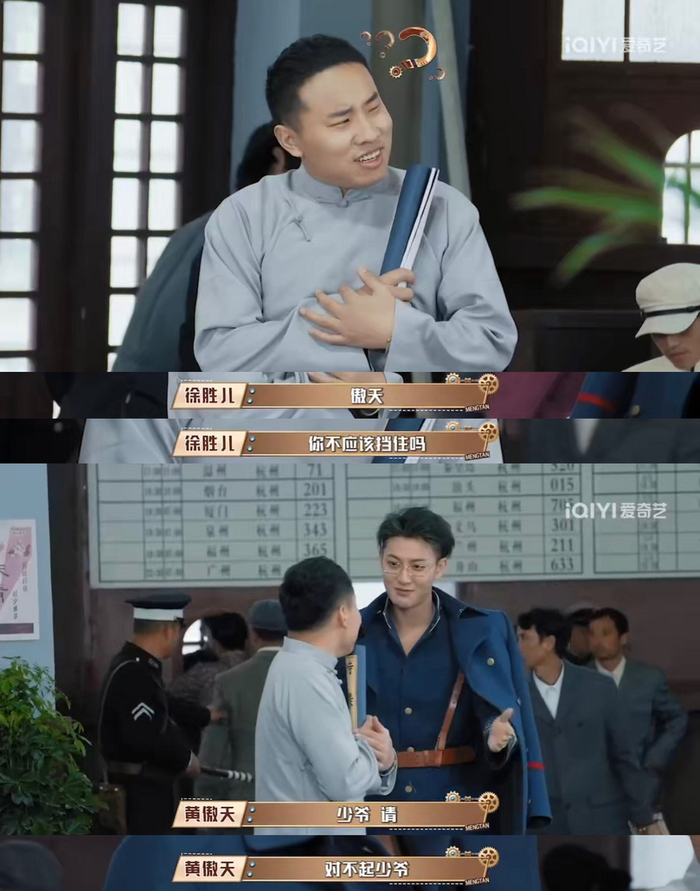 如果说首期《狂飙》主题让观众初次见识到了萌探家族3.0的搞笑功力,那么本期谍战主题所上演的一出出“狗血虐恋”大戏,足以令人笑倒在萌探家族的“信口胡诌”和“夸张举止”之下。当徐志胜身着长袍吟诗出场,贴身保护的黄子韬一句“少爷小心”,便瞬间引发观众爆笑。二人从形象到气质,均完美复刻了原版《少爷和我》。登场时主仆情深,游戏时却反目成仇。面对徐志胜果断将卧底票投给自家管家,黄子韬气急直飚青岛话,二人现场用山东话吵架的场景,已预定本年度综艺名场面TOP1。