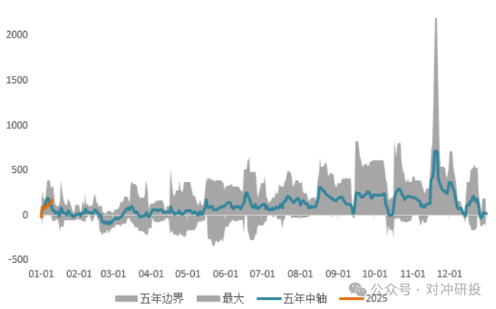 期限结构方面,COMEX铜价格曲线角此前向上位移,价格曲线仍然维持contango结构。由于此前COMEX价格与其他地区价差明显拉开,后续交仓的压力可能不小,加之美国对精炼铜征税的细则迟迟未能落地,时间拖得越长、到港的精炼铜可能越多,时间不是价差多头的朋友,因此COMEX的月差可能不会有太好的表现。