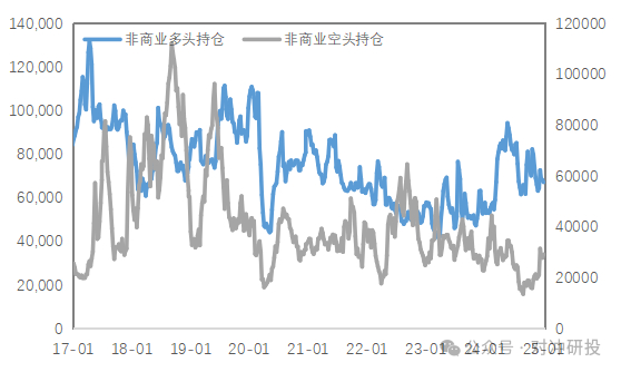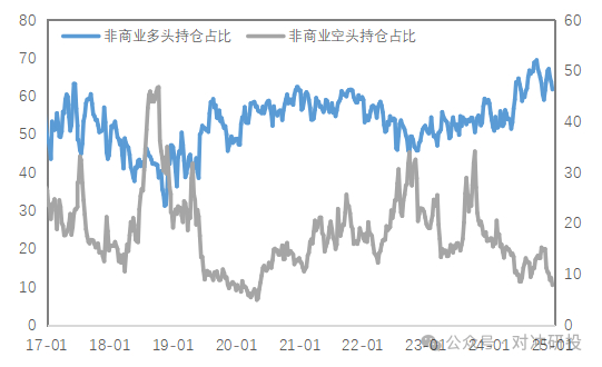 持仓方面,从CFTC持仓来看,上周非商业空占比维持低位,目前空头持仓占比回到了历史低位区间,预示铜价可能仍有反弹空间,但也要关注多头的增仓意愿。