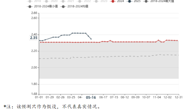 数据来源:紫金天风期货情景二:极端情况下,考虑该厂新增产能完全退出。我们假设该厂今年两条新增产线,分批退出,则建成产能比值来到2.35,仍高于历史同期水平。