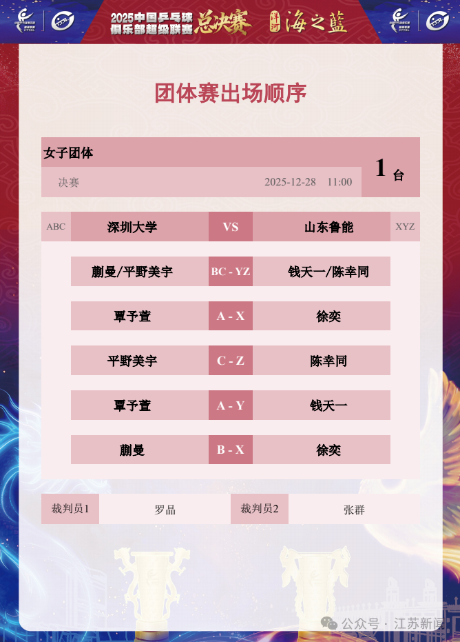 今天上午,2025乒超总决赛女团决赛深圳大学vs山东鲁能的对阵表出炉,王曼昱未出现在山东鲁能的参赛名单中。