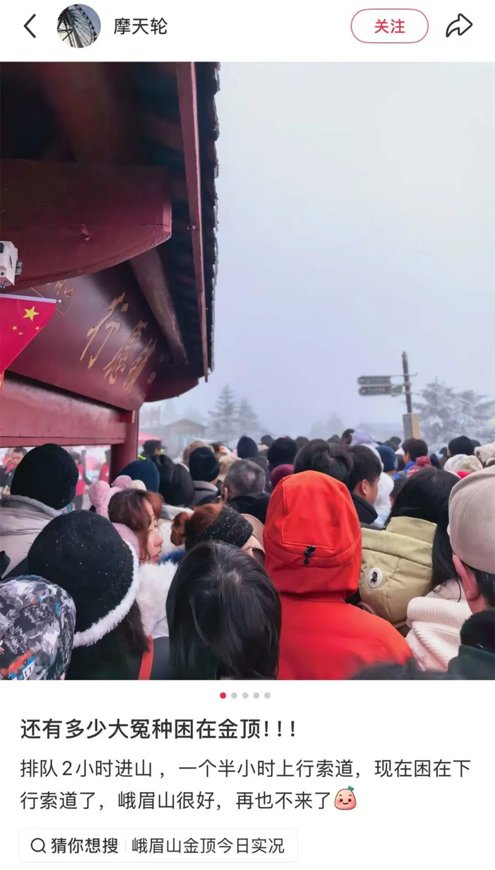 1月2日晚,有游客发视频称,四川峨眉山景区因游客较多,导致下山难,有游客排队近3小时才成功下山。