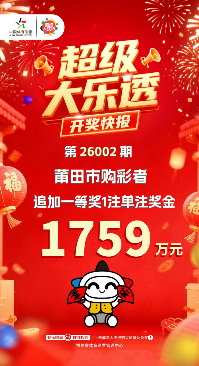 莆田、泉州购彩者中大乐透一等奖