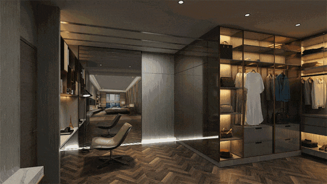 这方独立衣帽间,深度落脚于精神性愉悦的沉浸式营造,最终呈现出一个集收纳、艺术、悦己于一体的专属空间。