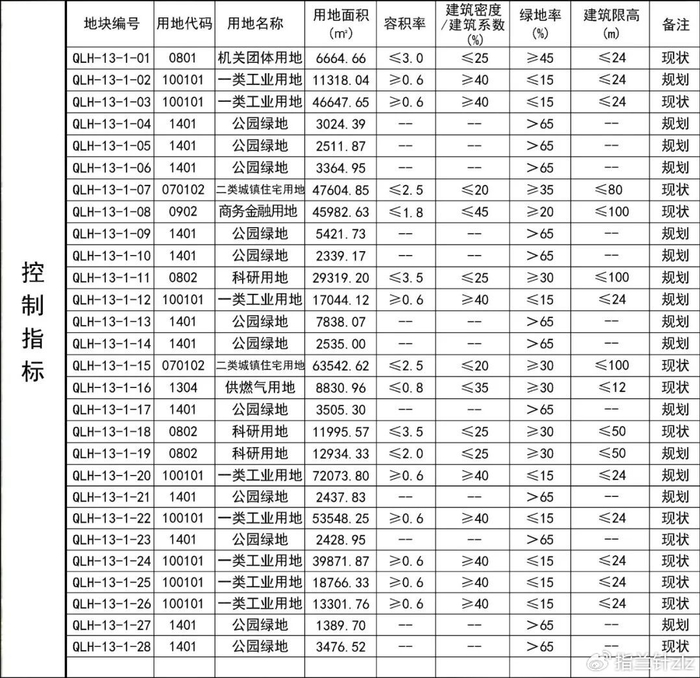 QLH-13单元用地指标 图源@兰州市自然资源局