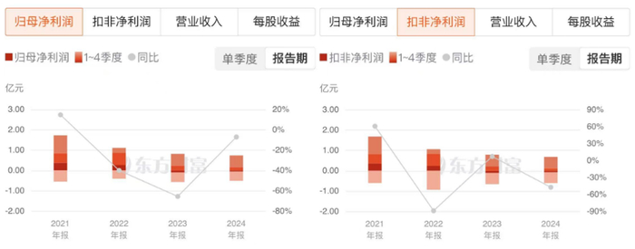 股价连续上涨期间,乐山电力发布了2024年业绩报告,公司实现营收31.96亿元,同比增长7.03%,但净利润却出现下滑,为2257.19万元,同比下降7.11%,扣非净利润则同比下降47.25%。