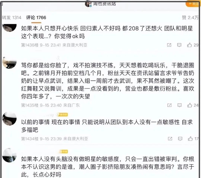 周也和工作室的评论区都已经沦陷了,不少粉丝都认为周也和团队都没有敏感度,看演唱会可以,但是也不是谁的演唱会都能去的,目前周也对此也没有回应。