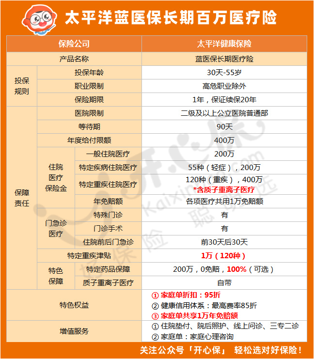蓝医保长期医疗险主要有以下几个亮点: