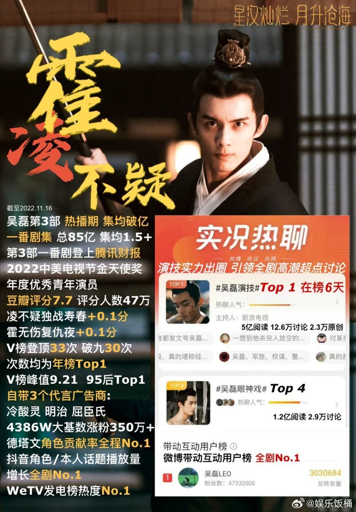 腾讯视频代言人吴磊的含金量还在上升!腾讯N刷榜常年霸榜的存在,实绩强、星光盛的国民top生,商业价值就是这么强,感觉我的生活已经被吴磊全方位覆盖了。