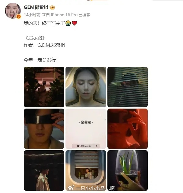 在华语乐坛,邓紫棋是一个极具影响力的名字。她用独特的嗓音、出色的创作才华征服了无数听众,从《泡沫》到《光年之外》,一首首经典歌曲传唱大江南北。然而,这位才华横溢的歌手,如今又解锁了新身份 —— 作家。4月15日,邓紫棋在社交平台兴奋发文:我的天!终于写完了。《启示路》作者G.E.M. 邓紫棋,今年一定会发行!这一消息瞬间在网上炸开了锅,粉丝们纷纷送上祝福,对这部小说充满了期待。
