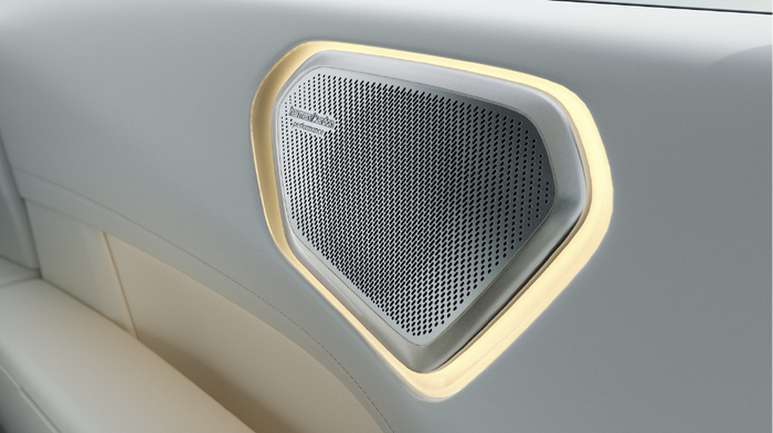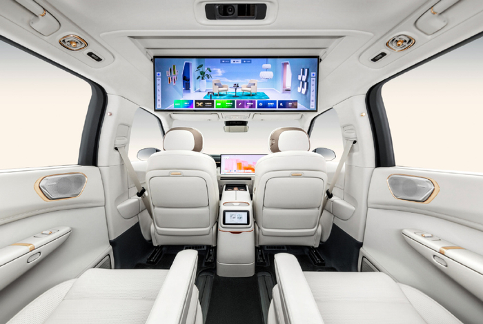 进入车内,“智感悬浮云岛”分层式中控台,上层12.6英寸悬浮屏与副驾、后排顶部的同尺寸娱乐屏构成三屏联动,三块屏幕均支持4K分辨率与240Hz刷新率,并搭载双骁龙8295芯片。中控区域的水晶材质旋钮内嵌256色RGB氛围灯,可与哈曼卡顿31扬声器音响系统实现声光联动——当播放交响乐时,灯光会随乐器音色变换色调;而在夜间行车时,柔和的渐变光带则自动切换为驾驶专注模式。