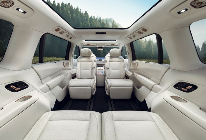 领克900在车内空间的使用上非常具有创造性。其二排座椅支持180°电动旋转,可与第三排形成面对面的“商务会议模式”。放倒二三排座椅后,车内形成纵深2.1米的纯平空间,专属充气床垫与全景天幕星空灯带联动,瞬间将座舱变为移动观星台。