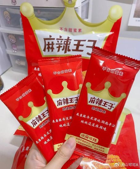麻辣王子被誉为辣条中的战斗机,以其地道的麻辣味著称。在传承传统辣条制作工艺的基础上,麻辣王子不断创新,将麻辣口味发挥到了极致。其独特的口感和鲜明的品牌形象,使其在众多辣条品牌中脱颖而出,深受年轻消费者的喜爱。无论是微麻微辣款,还是很麻很辣款,麻辣王子都能让人在品尝中感受到湖南辣妹子的火辣魅力。