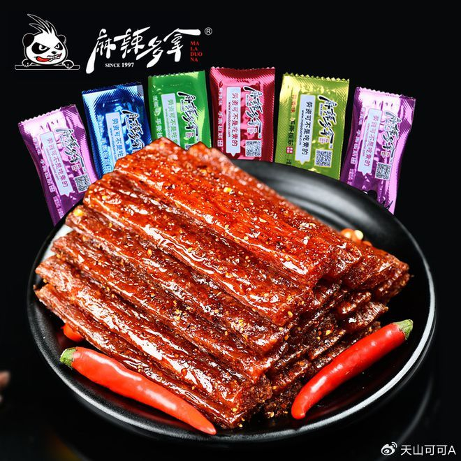 这个来自重庆的互联网麻辣食品知名品牌,以其独特的手撕板筋和麻辣肉味纤体素食系列产品在辣条界迅速崛起。麻辣多拿的辣条产品极具特色,手撕板筋系列让人在亲手撕扯的过程中感受到其独特的韧性和纹理,而麻辣肉味纤体素食系列则巧妙地将肉味与素食相结合,满足了消费者对于美味与健康的双重追求。