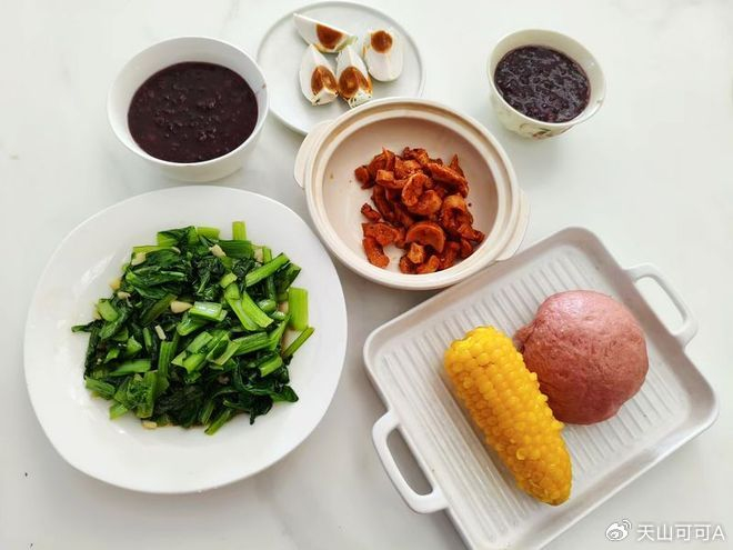 我家早餐,各种粥是必备流食早餐主食。一般都是用电饭煲或者电压力锅煮,智能的小家电可以预约,这样熬粥好吃又节省时间。看看这是我家早餐,炒菜,馍馍和黄糯玉米,还搭配咸鸭蛋,和麻辣萝卜干,开胃又暖和的早餐,细粮细粮一起吃,就是这样做出来的。