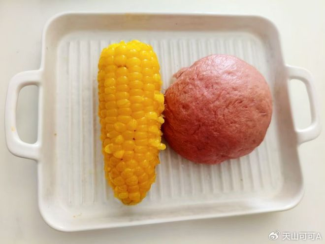 黄糯玉米+红曲粉馍馍,这是用蒸锅加热,一锅可以出来两种主食,黄糯玉米是我爱吃的,那馍馍是老公爱吃的,两种颜色不同,营养不同。味道真是不错!