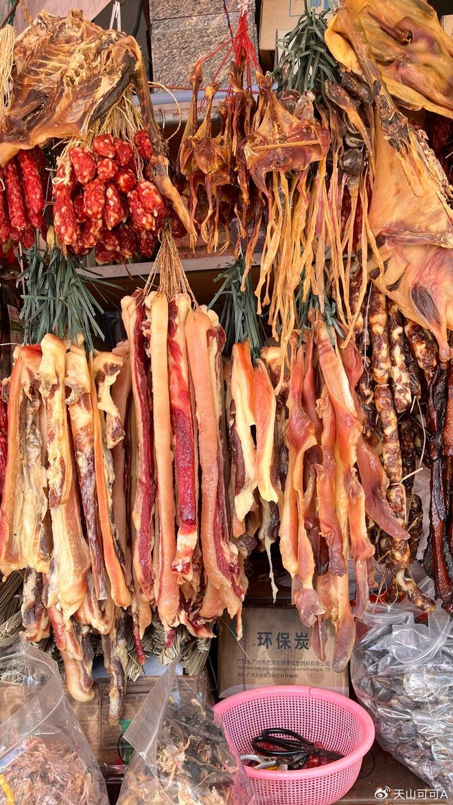 云南宣威火腿闻名遐迩,而当地的腊肠则混入野生菌粉,形成独特鲜味。贵州黔东南的侗寨"酸肉"虽非传统腊味,但其乳酸发酵工艺与腊制有异曲同工之妙。丽江纳西族的"琵琶肉"整猪腌制,形似乐器,需埋入地窖陈化三年以上,《滇南新语》称其"味似火腿而更醇"。这些少数民族腊味往往与祭祀仪式相关,如苗族鼓藏节必以陈年腊肉待客。