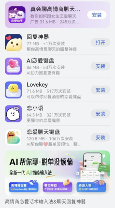 (应用市场有多款恋爱聊天技巧APP 图源:应用市场截图)