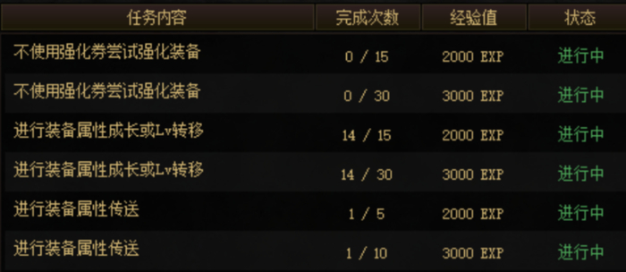 每周任务虽然有6个,但每周只能选择完成其中3个,无论是否完成都会在每周四早6点重置,每周通过完成每周任务共可获得13500探险经验。