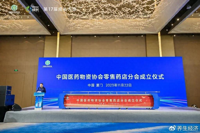 11月22日,中国医药物资协会第六届第七次常务理事会议上,零售药店分会举行成立仪式。