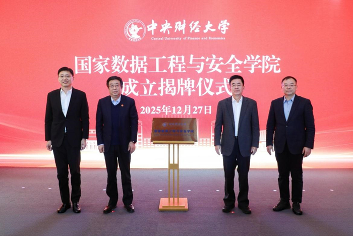 12月27日上午,中央财经大学国家数据工程与安全学院成立揭牌仪式暨国家安全与数据学科建设专家座谈会举行。来自国家统计局、国家数据局、北京市委有关部门、国防大学、中国人民大学、华东师范大学、中国现代国际关系研究院、中央民族大学等单位的领导专家出席,共同见证学院成立,共商数据工程支撑下的国家安全学建设专题。校长马海涛致辞,各单位、部门代表50余人参加了本次会议。揭牌仪式与专家座谈会由校党委常委、副校长李建军主持。