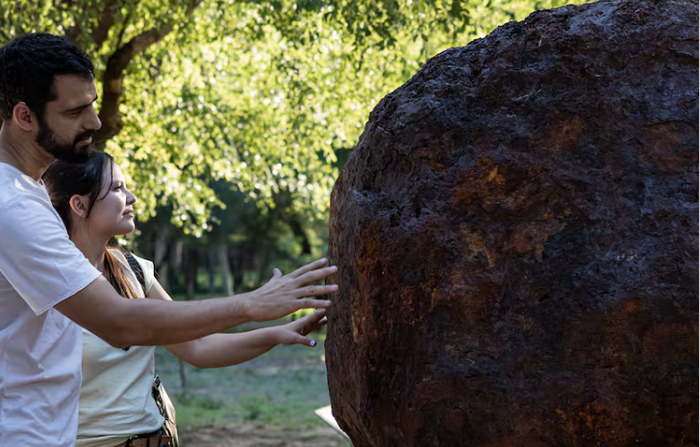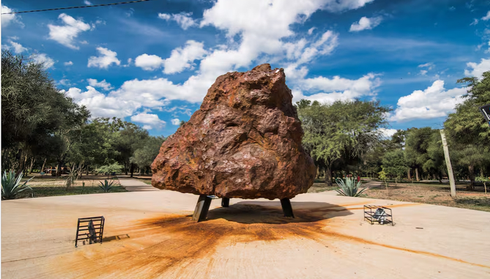 游客漫步在园区,随时能看到几乎纯净的铁陨石碎块。其中最震撼的莫过于“ElChaco”陨石,重达37吨,是全球第二大铁陨石,仅次于纳米比亚的Hoba陨石(66吨)。
