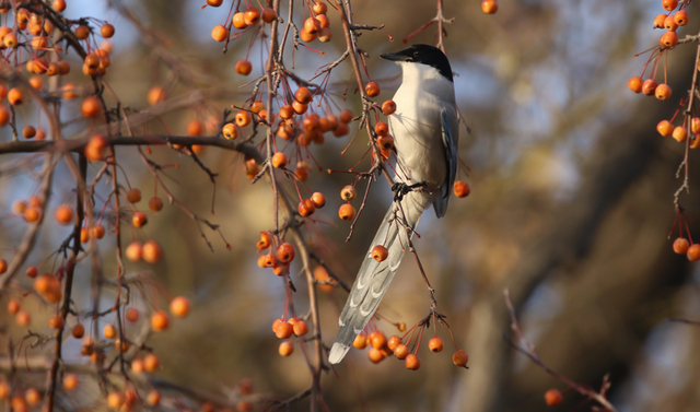 而最凶悍的恐怕还得属灰喜鹊(笔者真的被它们揍过)。虽然名字里有个“灰”,但灰喜鹊可不是灰色版喜鹊。它们一身灰蓝色为主色调,相较于喜鹊来说个头更小巧,或许单打能力比不上喜鹊,但喜鹊平时不太喜欢扎堆,而灰喜鹊却是群居性的。一个区域的灰喜鹊会组团觅食,组团保护未成年的幼崽,所以能见到它们成群结队地在天空中飞。笔者大学的四年里,就曾看着灰喜鹊在校园里一点点扩张,慢慢将喜鹊挤出校园领地范围。