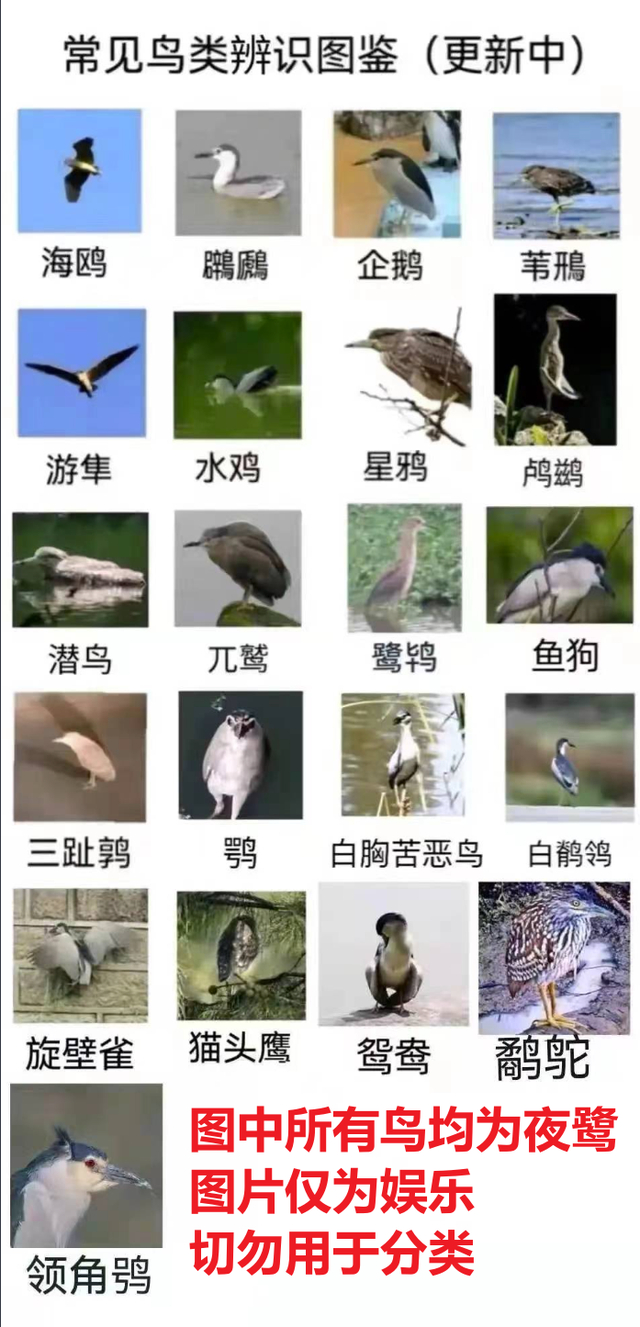 注意白鹭爪上的黄色 作者拍摄而鹭中搞笑担当则要属夜鹭,由于经常被拍到,加上毛色百搭动作极多,很容易被误认为其他鸟,堪称“拟态大师”的它们为广大网友贡献了大量表情包。