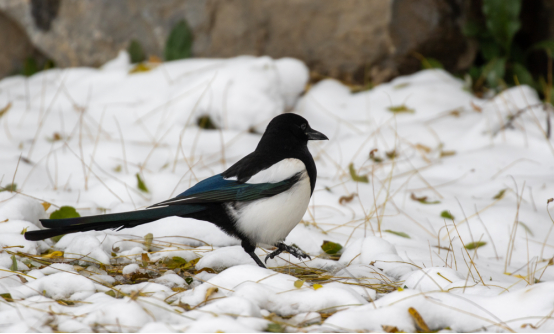 小嘴乌鸦,注意它有更小的喙,喙与头部的转折更平缓 作者拍摄而喜鹊与乌鸦同属鸦科,仅仅因为颜色和叫声,前者成了喜庆的代表而后者成了厄运的象征,真是造化弄鸟啊。喜鹊一身黑色配色的羽毛好像没有特别之处,但在阳光之下,黑色的羽毛就泛出七彩的颜色来,可以说是“五彩斑斓的黑”了。