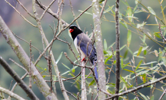红嘴蓝鹊 作者拍摄但美中不足的是,这么漂亮的鸟,张嘴一出声还是鸦科那味,类似喜鹊的“喳喳”声,但是更尖,多少有点配不上自己的美貌了。