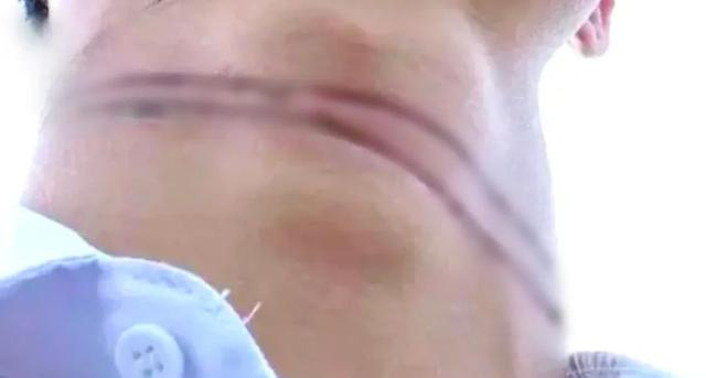 外卖小哥颈部勒出25cm血痕