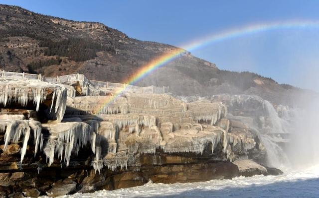 黄河壶口瀑布出现冬日彩虹美景。(吕桂明 摄)“去年暑假我来过一次,看到了金黄色的瀑布,今年元旦假期,我和妈妈专程又来了,看到了冬天不一样的瀑布美景,依旧是那么令人震撼!”来自河北石家庄的游客赵钰涵说。