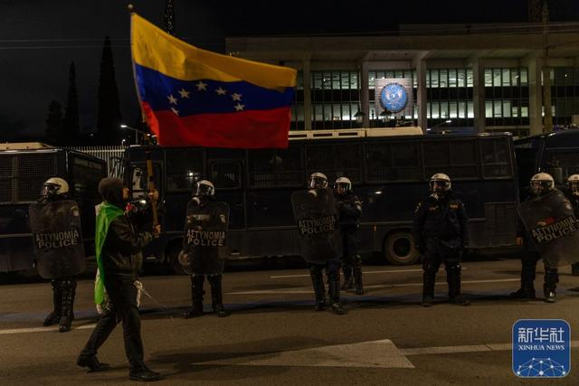 1月3日,在希腊首都雅典,当地民众在美国驻希腊大使馆外参加抗议活动。新华社发(马里奥斯·罗洛斯摄)