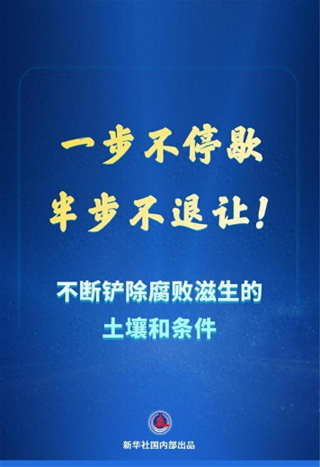 坚决打好反腐败斗争攻坚战、持久战、总体战,必须深化标本兼治,一体推进“三不腐”,在铲除腐败滋生的土壤和条件上下更大功夫,一步不停歇、半步不退让,坚定不移把反腐败斗争向纵深推进,为“十五五”时期经济社会发展提供有力保障。