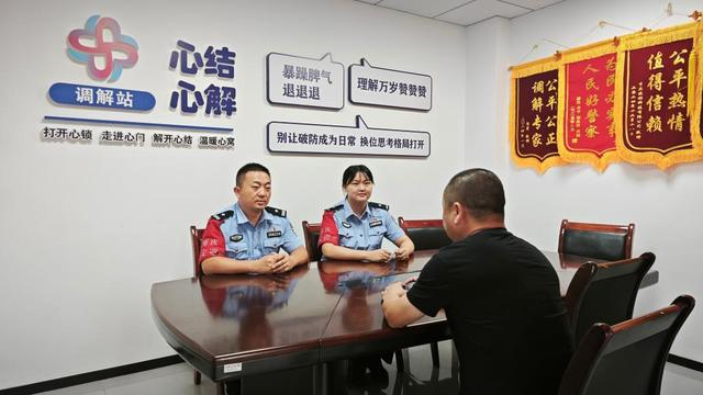 图为北碚区公安分局朝阳派出所民警正在开展调解工作。(受访者供图)“哟,‘扭到费’来了,快坐!”“费警官,上次多亏你提醒,我才没上当!”这样的招呼声,常常回响在朝阳派出所民警费俊峰的耳边。