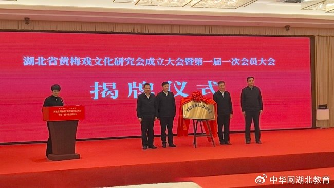 12月26日,湖北省黄梅戏文化研究会成立大会暨第一届一次会员大会在黄梅戏发源地——湖北黄梅县召开。湖北省政协副主席张维国出席会议并讲话,省文化和旅游厅副厅长余平主持会议。省内戏剧专家、高校学者、院团代表等齐聚一堂,共同为黄梅戏的保护传承、学术研究与创新发展汇聚智慧与力量。黄冈师范学院党委书记陈向军应邀参会。