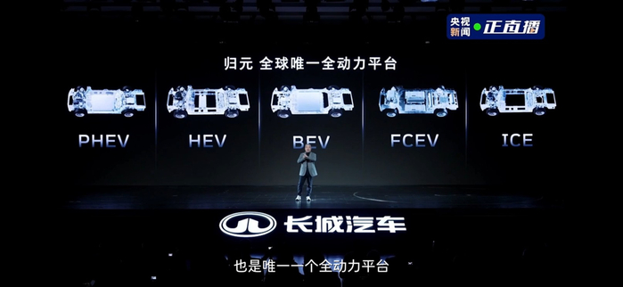 长城汽车总裁穆峰在发布会中强调:“没有一种动力通吃全球。归元平台是全球第一个,也是唯一一个全球动力平台”。归元可兼容插混、混动、纯电、氢能、燃油五大动力形式,真正实现“一个平台、多种能力、生而全球”。