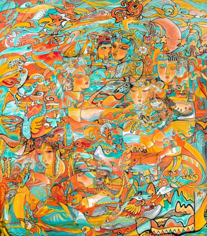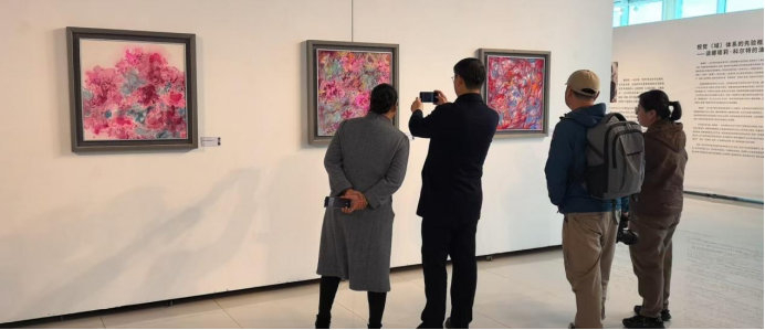 比利时艺术家娜塔莉·科尔特的作品则以抽象绘画为主,通过色彩的自由挥洒与线条的灵动交织,表达对自然与情感的即时感悟。两位艺术家的作品在展厅中相互映衬:张双凤的创作重“意境”与“叙事”,根植于具体的文化语境与生命体验;娜塔莉的作品重“表达”与“感受”,追求纯粹的视觉张力与情感释放。这种差异不仅没有造成审美隔阂,反而形成了“具象与抽象”“叙事与抒情”“东方与西方”的多元对话,正如本次展览学术主持包贵韬所言:“‘遥望’的核心不是彼此观望,而是通过艺术的语言,让不同文化背景下的创作理念相互滋养,最终抵达对人类共同情感的表达。”